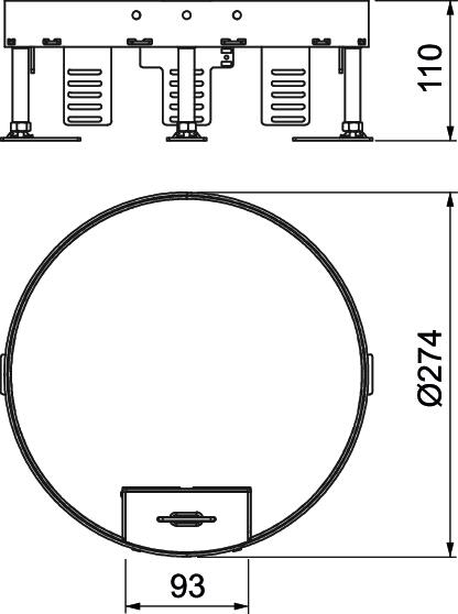 Approvals VDE Cable outlet version Swivellable cord outlet CO2 Footprint (GWP) Cradle-to-Gate 16,2745 kg CO2e / 1 Piece Decouplable no Device support to accept mounting boxes yes Dimension Ø275mm Floor care Dry Floor covering thickness 25 mm Floor height, max. 155 mm Floor height, min. 110 mm Heavy-duty version no Height-adjustment range, max. 155 mm Height-adjustment range, min. 110 mm Installation depth 110 mm Installation diameter 275 Installation system type UT3 / UT4 Length 274 mm Material Stainless steel 1.4301 Nominal size for device installation units R7 Number of cable outlets 1 Number of installable devices 10 Number of mounting boxes 3 Protection rating (IP) when unused IP40 Protection rating (IP) when used IP20 Protection rating IK code IK10 Suitable for cavity floor installation yes Suitable for raised floor installation yes Version for Round Vertical load, large area to 5,000 N Vertical load, small area to 3,000 N Width 274 mm - All types