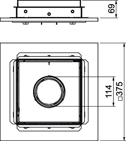 Product descriptionHeight-adjustable and decouplable square cassette for floor-flush and seamless device installation in underfloor connection boxes UZD 250-4 (minimum installation depth 161 mm)/UGD55 250-3 (minimum installation depth 136 mm). Suitable for all cement screeds. Cassette frame with integrated lined body and height-adjustment function. The height of the cassette frame is adjusted to the top edge of the floor covering using four slots. Suitable for dry-, moist- or wet-cleaned floors. The cassette is fixed in the mounting cover by fastening brackets during screed/Terrazzo work and is decoupled in all directions in the installed state. The cassette frame is made of stainless steel with a 25 mm-deep floor covering recess in the lid.