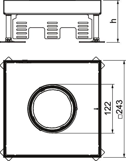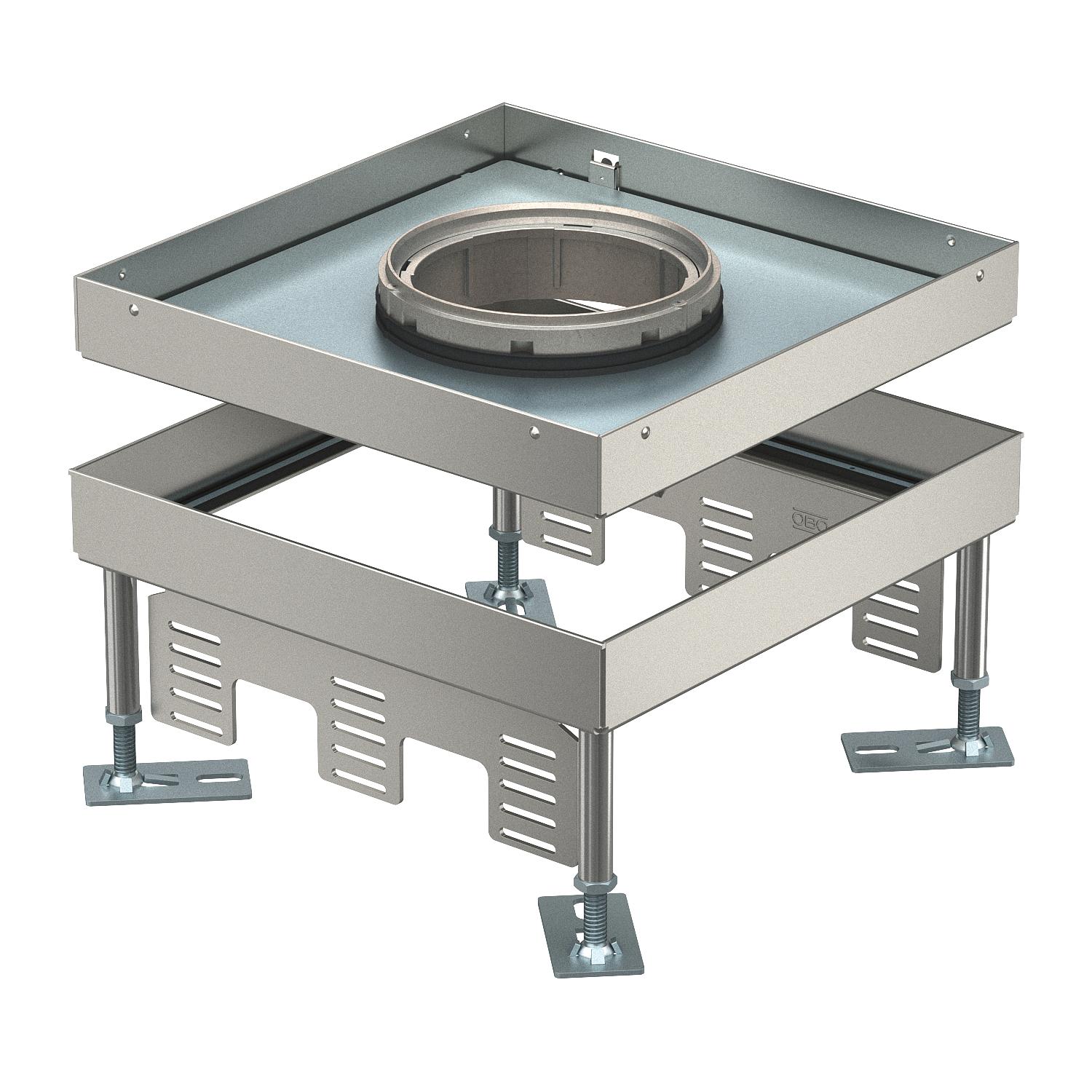Product descriptionHeight-adjustable heavy-duty cassette for tube bodies of nominal size 9 for the installation of devices in duct systems, raised and cavity floors in interior dry or wet-care floors. Load class 1 to 10 kN.