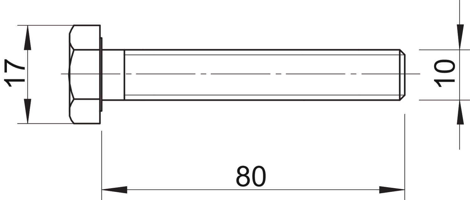 CO2 Footprint (GWP) Cradle-to-Gate 0,122 kg CO2e / 1 Piece Dimension M10x80 Dimension d 10 mm Dimension L 80 mm Full thread yes Left thread no Length 80 mm Material Steel Resistance grade 8.8 Screw system Hexagonal Self-locking no Surface Zinc slat Thread M10 Thread length 80 mm Thread metric 10 Thread type Metric WAF 17 With flange no With nut no With washer no - All types