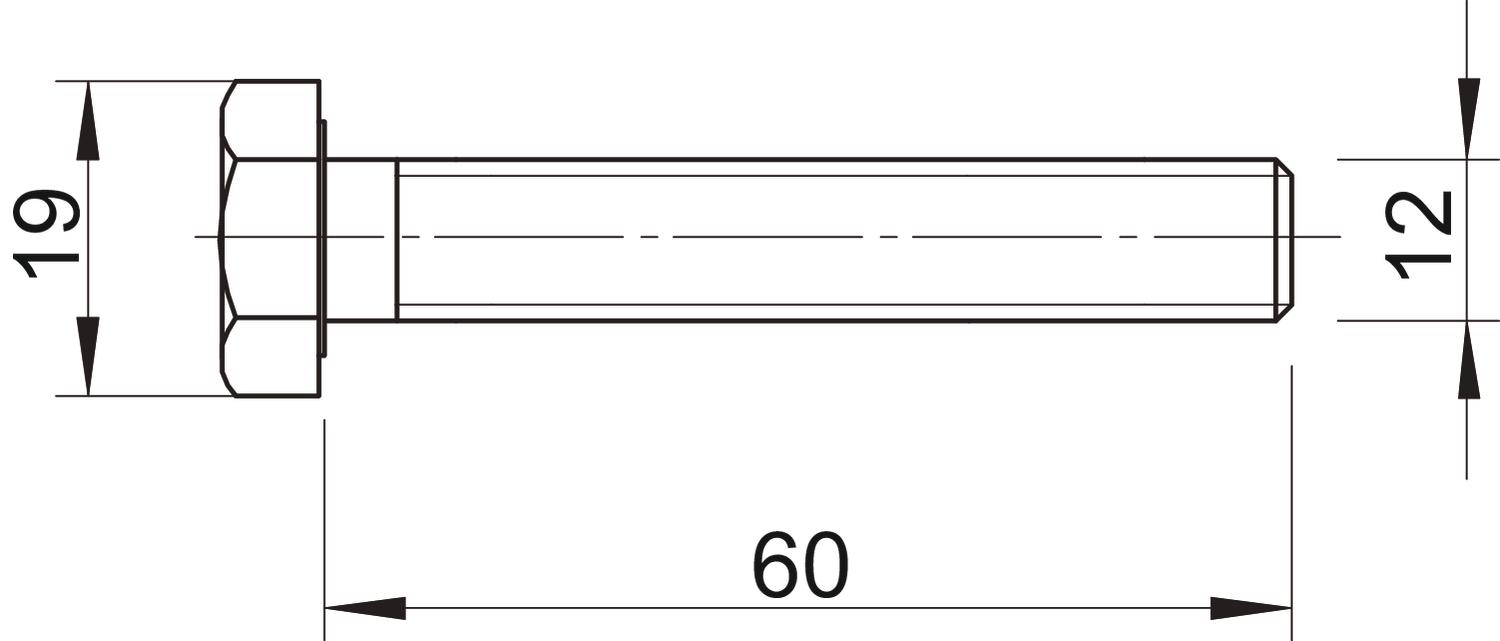 CO2 Footprint (GWP) Cradle-to-Gate 0,1403 kg CO2e / 1 Piece Dimension M12x60 Dimension d 12 mm Dimension L 60 mm Full thread yes Left thread no Length 60 mm Material Steel Resistance grade 8.8 Screw system Hexagonal Self-locking no Surface Zinc slat Thread M12 Thread length 60 mm Thread metric 12 Thread type Metric WAF 19 With flange no With nut no With washer no - All types