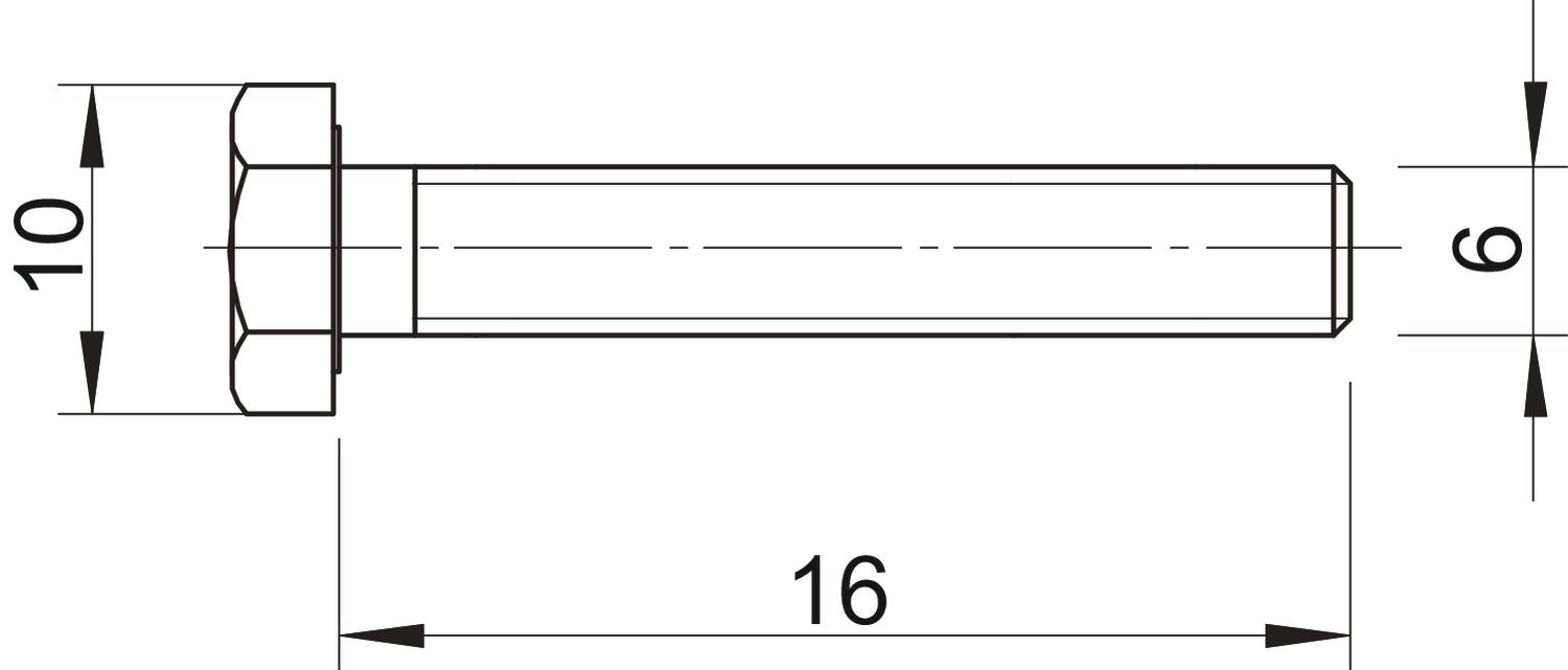 CO2 Footprint (GWP) Cradle-to-Gate 0,0123 kg CO2e / 1 Piece Dimension M6x16 Dimension d 6 mm Dimension L 16 mm Full thread yes Left thread no Length 16 mm Material Steel Resistance grade 8.8 Screw system Hexagonal Self-locking no Surface Zinc slat Thread M6 Thread length 16 mm Thread metric 6 Thread type Metric WAF 10 With flange no With nut no With washer no - All types