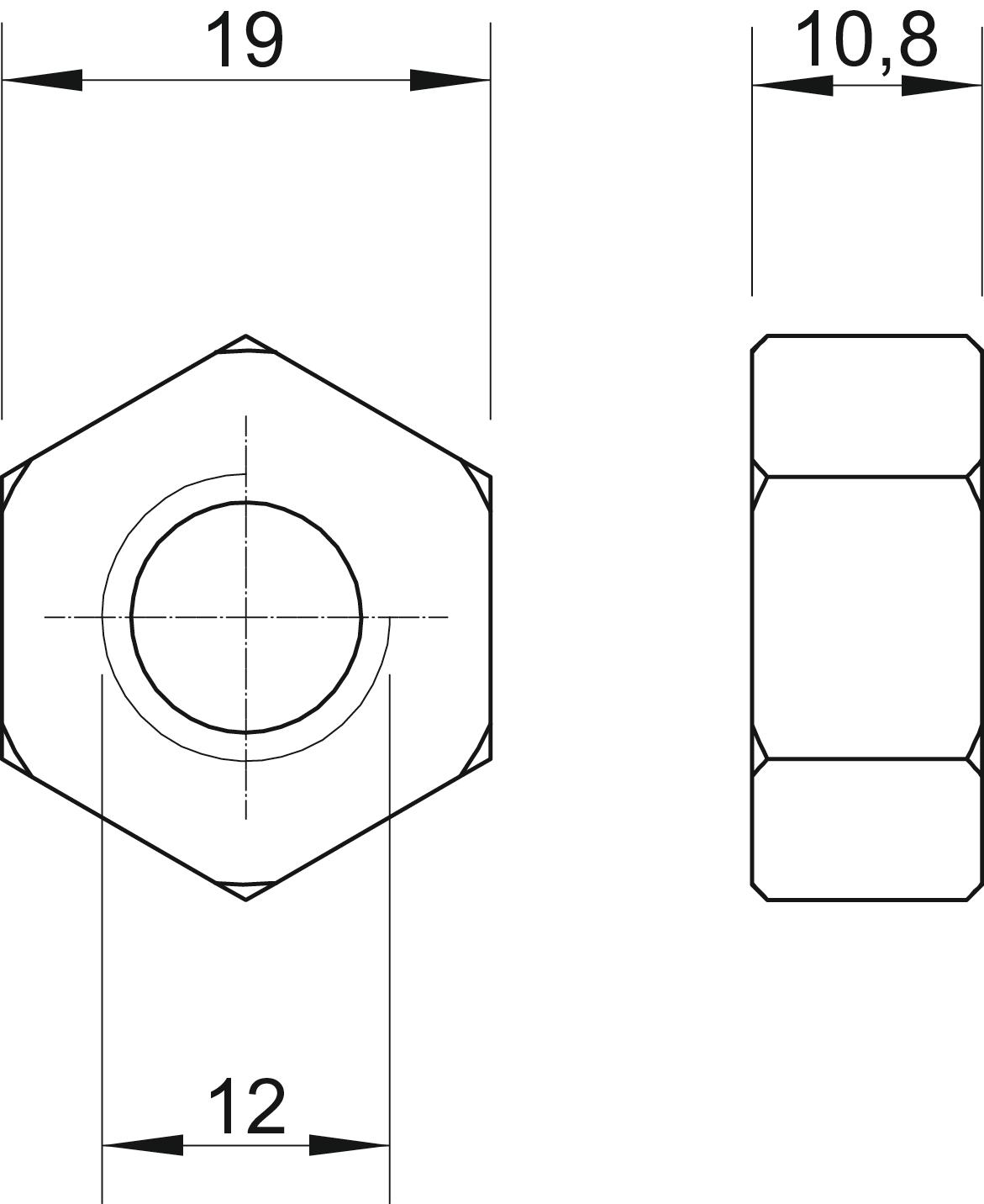 Product descriptionHexagonal nut to DIN 934 with metric thread.