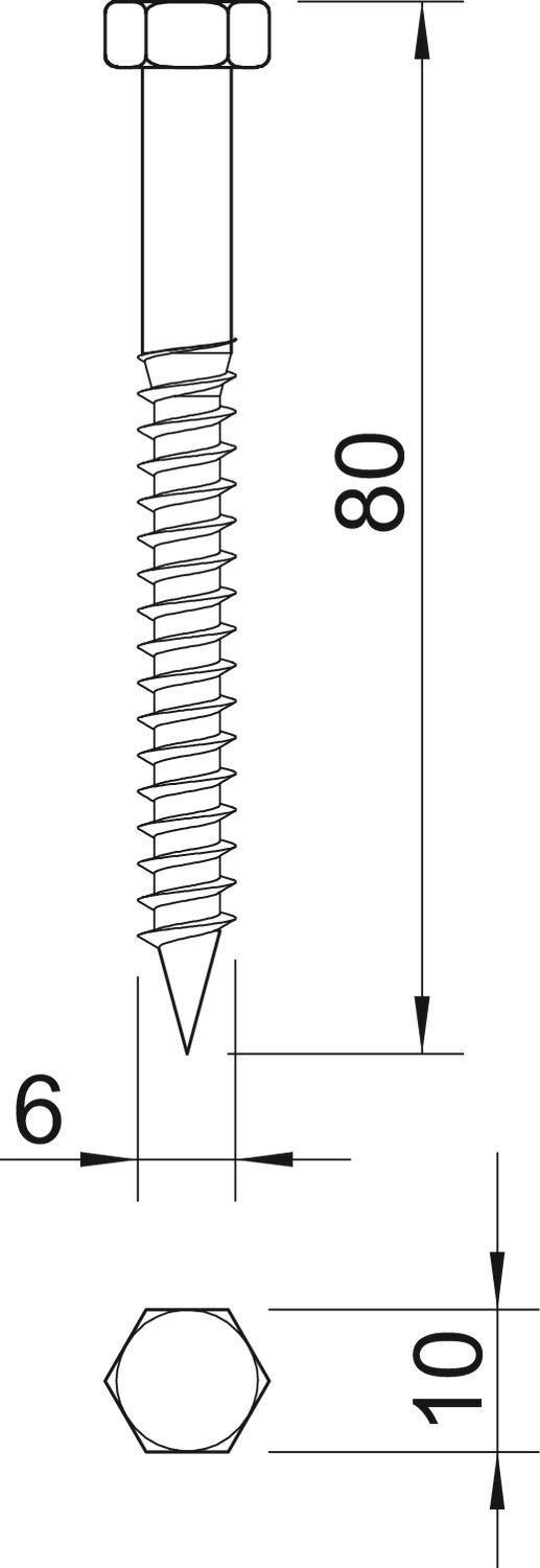 Product descriptionHexagonal screw to DIN 571 with wood thread. Suitable for anchors, type 910.