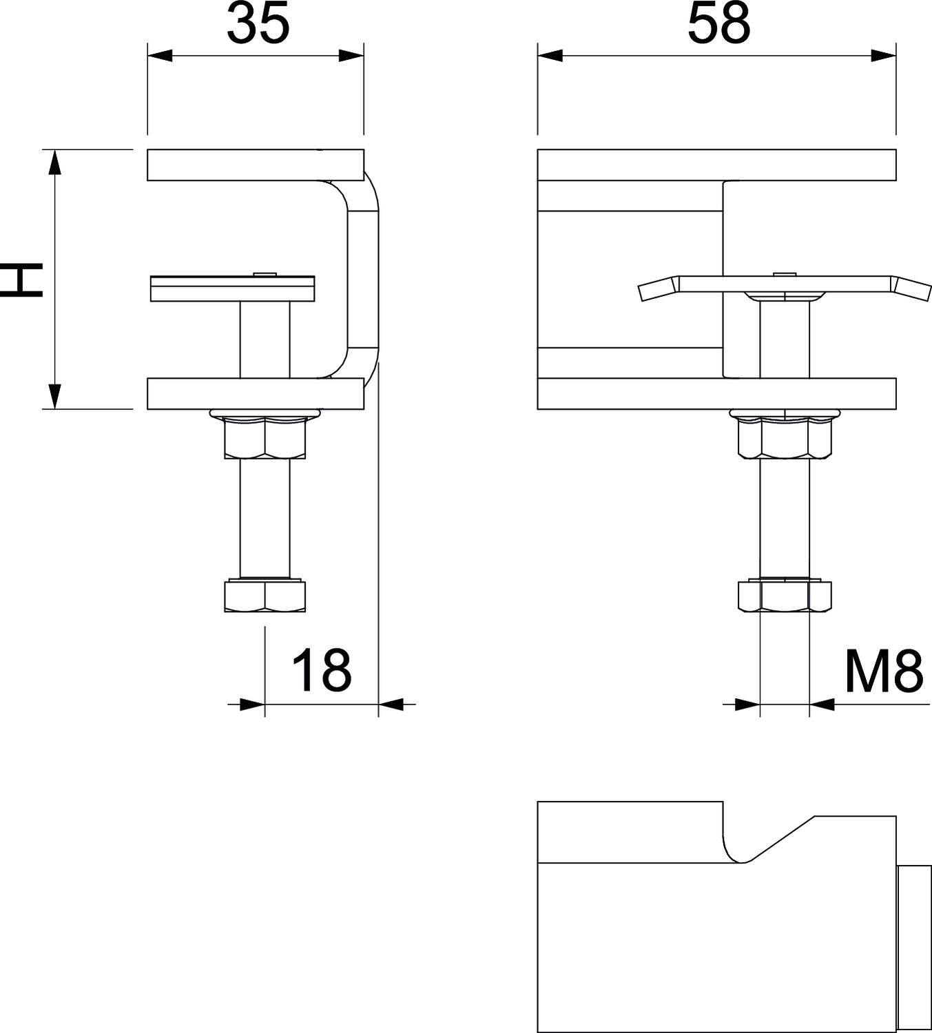 Product descriptionHold-down clamp for position fixing of horizontal cable ladders on horizontal steel girders.