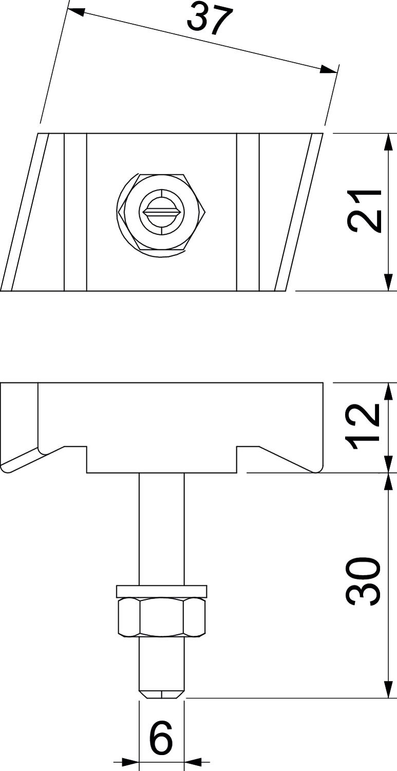 CO2 Footprint (GWP) Cradle-to-Gate 0,3885 kg CO2e / 1 Piece Dimension M6x30mm Height 12 mm Length 43 mm Material Stainless steel Suitable for mounting rail yes Surface Bright, treated Thread M6x30mm Thread metric 6 Width 21 mm - All types