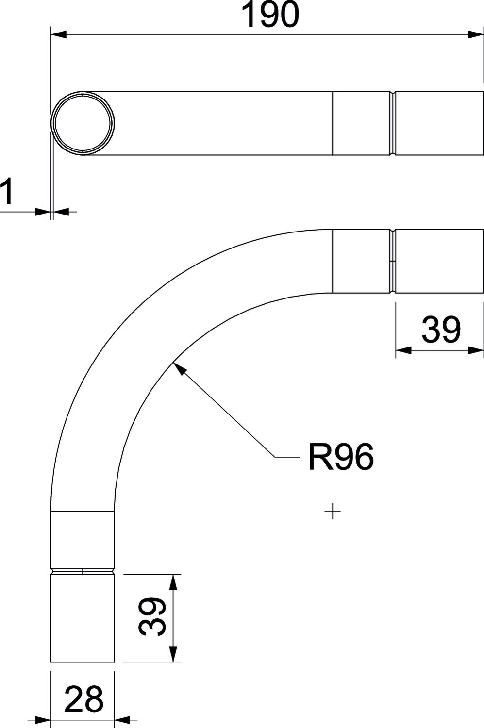 Angle of the bend 90 ° Brushed surface no CO2 Footprint (GWP) Cradle-to-Gate 0,8199 kg CO2e / 1 Piece Dimension Ø25mm Dimension A 66,5 mm Dimension B 191 mm Dimension d 25,5 mm Dimension D 28 mm Dimension l 40 mm Dimension m (mm) M25 Dimension R 110 mm Dimension t 1,2 mm Flexible no For nominal pipe diameter 25 mm Halogen-free no Material Steel Permitted temperature range, max. 400 °C Permitted temperature range, min. -45 °C Polished surface no Surface Hot-dip galvanised Two-part no Version for Connector With inspection opening and lid no With sleeve yes - All types