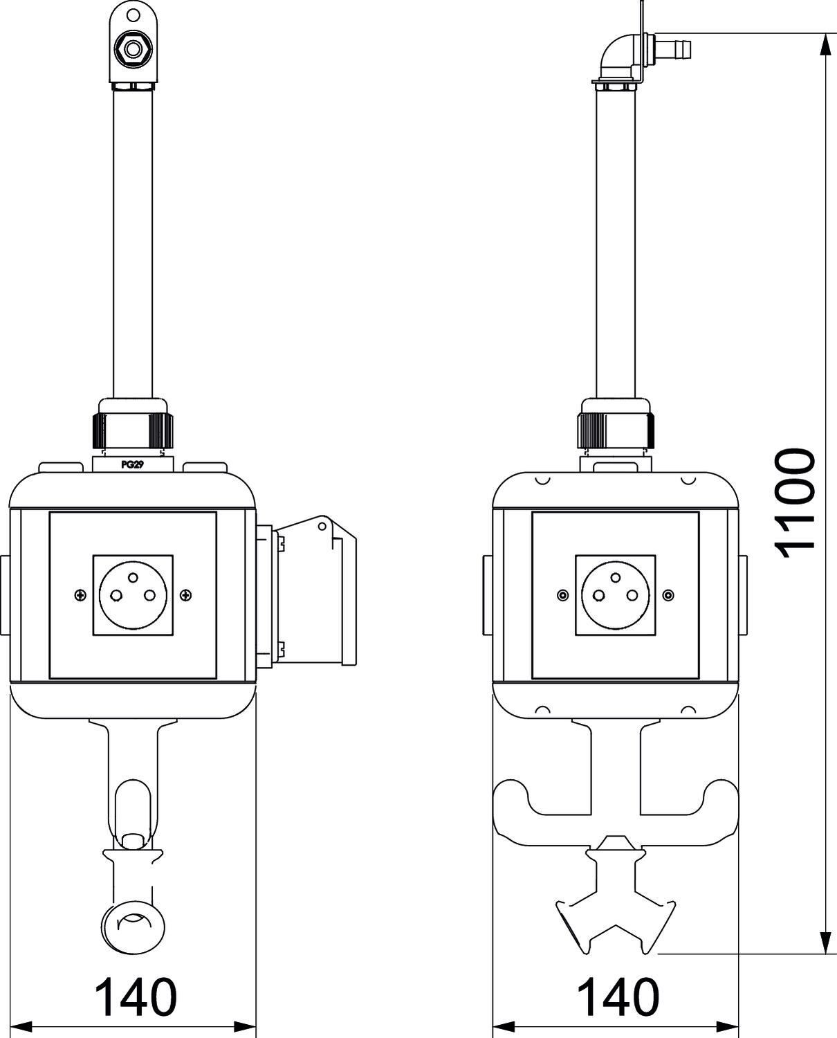 CEE socket, 16 A 1x16A5p400V CEE socket, 32 A Without CO2 Footprint (GWP) Cradle-to-Gate 5,6022 kg CO2e / 1 Piece Colour Graphite black; RAL 9011 Depth 196 mm Dimension 140x140x1100 FI protection switch Without Handling abhängbar Height 1100 mm Material Polyamide Military version no Other installations and/or empty slots 4 Protection rating IP20 Supply/connection option Miscellaneous Width 140 mm - All types