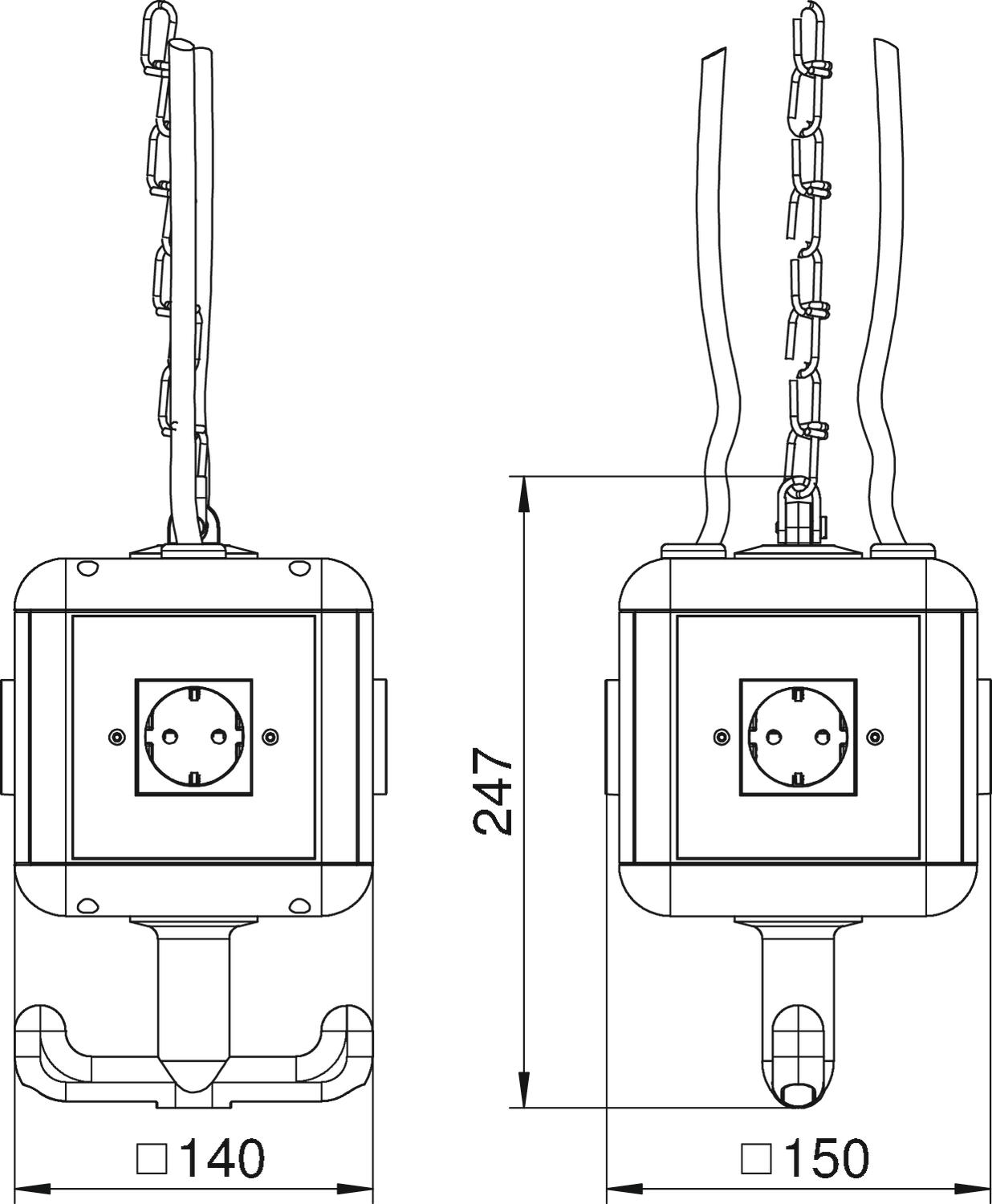 Product descriptionHousing equipped and prewired with suspension lug, grip hook and four cover plates.