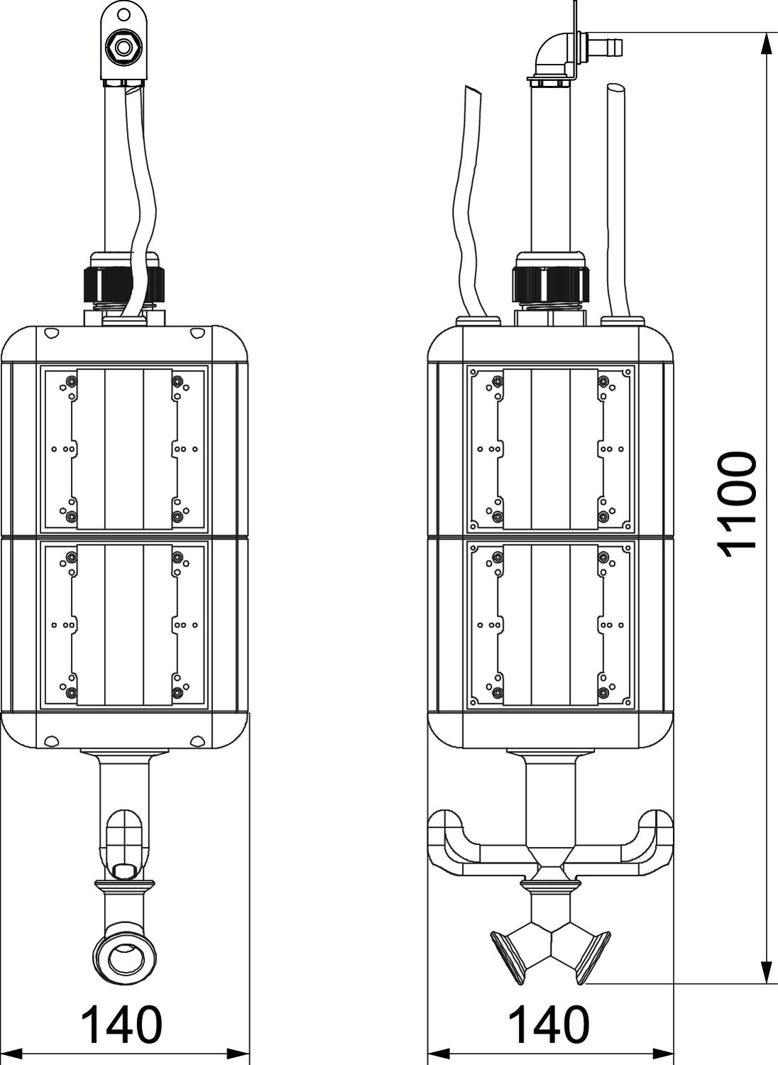 Product descriptionEmpty housing with 1 m pipe 1/2" and connection for compressed air hose 13 x 3.5 mm and 2-way distributor 1/2". With suspension lug and grip hook, for the installation of electrical resources, with included partition. Without cover plates.