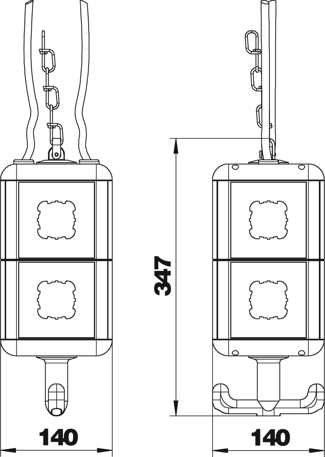 Product descriptionEmpty housing with suspension lug and grip hook, for the installation of eight electrical resources, with included partition. With eight cover plates for accessories with concealed support ring or support bracket.