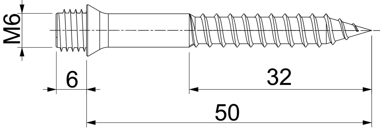Product descriptionWood screw for fireproof fastening of cable systems for the maintenance of electrical function according to DIN 4102 Part 12 on supporting wooden components. The hanger bolt allows the installation of the ASG 732 clip on wooden components.