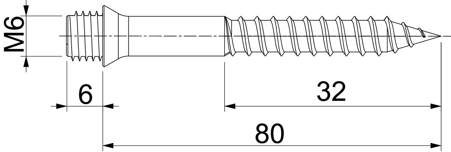 Product descriptionWood screw for fireproof fastening of cable systems for the maintenance of electrical function according to DIN 4102 Part 12 on supporting wooden components. The hanger bolt allows the installation of the ASG 732 clip on wooden components.