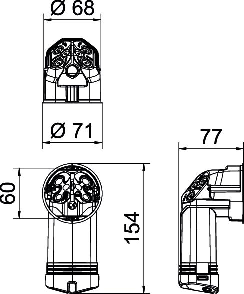 Airtight yes Cable entries 3 x 1.5 mm² 2 Cable entries 3 x 2.5 mm² / 5 x 1.5 mm² 2 Cable entries 5 x 2.5 mm² / 7 x 1.5 mm² 2 CO2 Footprint (GWP) Cradle-to-Gate 0,2212 kg CO2e / 1 Piece Colour orange / grey Combination entries Ø 20 / 25 mm 2 Cover fastening Screws , Cover screw clearance 61 mm Device fixing Screws , Diameter 68 mm Flame-resistant Acc. to VDE 0471/IEC 60695-2-11, test temperature 850°C for pipe diameter 20/25 mm Halogen-free yes Height 77 mm Impact-resistant no Length 154 mm Material Polypropylen / Thermoplastisches Elastomer Milling hole diameter 68 mm No. of entries 8 Nominal cross-section, max. 2,5 mm² Nominal cross-section, min. 1,5 mm² Number of switch boxes 1 Protection rating IP30 Rated voltage 400 V Shape Miscellaneous Suitable for plate thickness, max. 35 mm Suitable for plate thickness, min. 5 mm Support Connector Type of housing penetration Insertion membrane Width 71 mm With bolts yes - All types