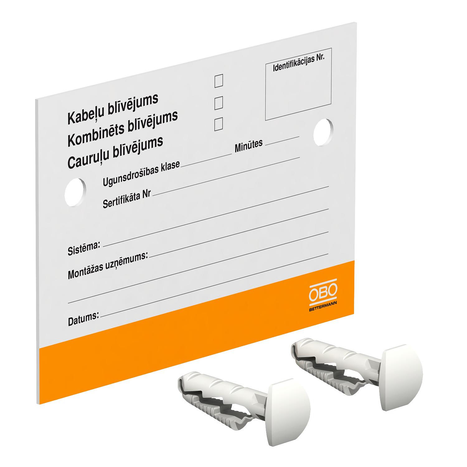 Product descriptionIdentification plate to be written on with waterproof and light-resistant felt-tip pen for fire-safe cable glands, including 2 push-fit anchors.