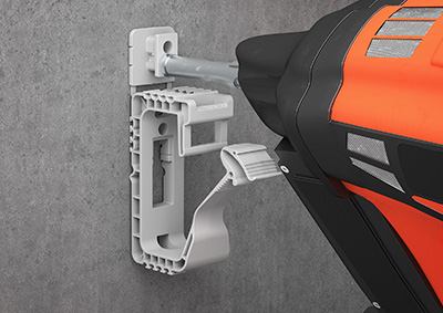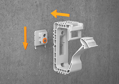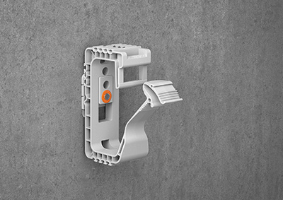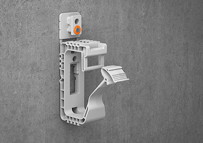 The GRIP grouped support made from plastic is suitable for general use for wall and ceiling mounting. Thanks to its two fastening holes, the GRIP grouped support combines both options: conventional fastening with an anchor or screw and fastening with a firing tool. For direct fastening, the moulded fastening element of the GRIP grouped support can be placed on the head of the firing tool and is automatically fixed using special lamellae. Fastening takes place directly on the wall or ceiling using the firing tool without additional aids. Clean, quick, uncomplicated and done with just one hand.