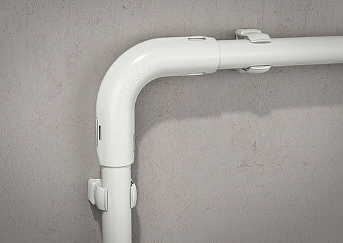 The Quick pipe system combines the benefits of cable ducts and conventional electrical installation pipes to produce a single, intelligent system for surface-mounted installations. It comprises the Quick pipe electrical installation pipes, the Quick clips and a selection of perfectly matched fittings.