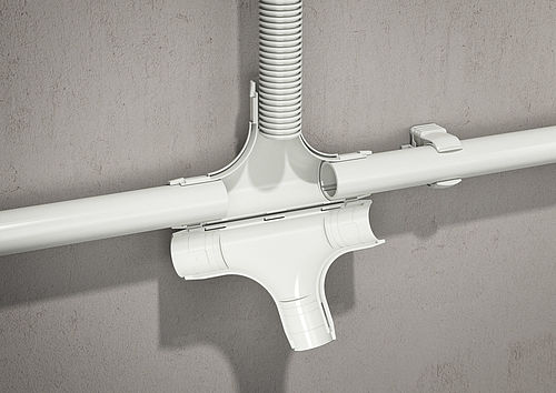 The T piece from the Quick pipe accessory range offers particularly rapid installation and retroinstallation. An optimised hinge means that the fitting consists of just a single component and can be easily opened and installed with one hand. This means that it can be opened and closed any number of times. This provides even more flexibility in installation and time savings as well, because there is no need to combine the two half shells. Retroinstallations can also be performed simply and any number of times