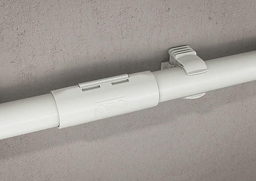 The innovative clamp clips are suitable for cable diameters between 15.5–63 mm as well as for all metric pipe sizes from M16 to M63. High pipe extraction values of up to 230 N guarantee a secure hold of the system on walls and ceilings.