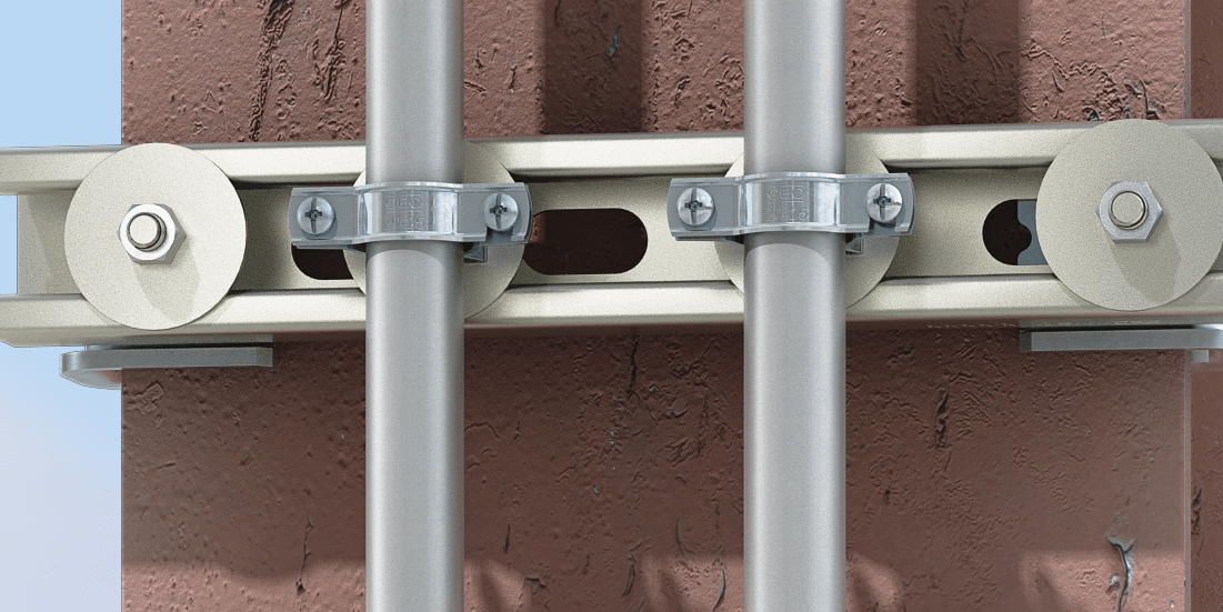 Besides direct wall mounting, there is also the option of fastening the spacer clips on components, for example with washers on profile rails or cable sections.