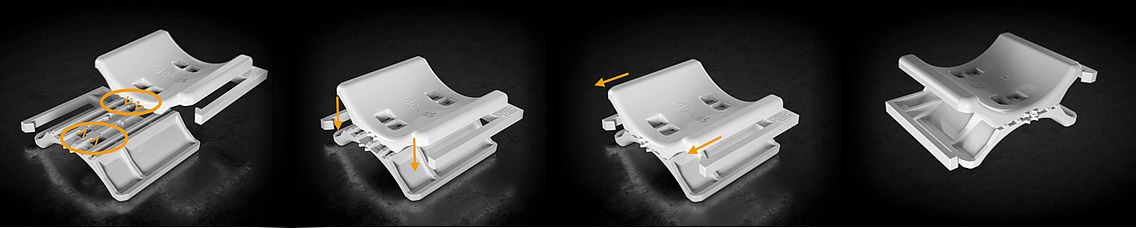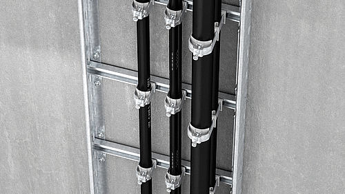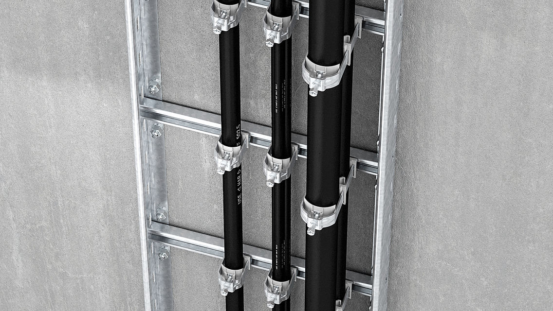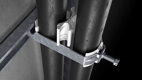 The universal counter-trough also offers considerable simplification during the actual installation. This is because the counter-trough is only inserted from above just before the clamp clip is tightened. This means that more space is available when installing the clamp clip ‒ this simplifies installation in areas that are difficult to access. The counter-trough also makes uncomplicated retroinstallation possible, as the clamp clip does not need to be dismantled totally.