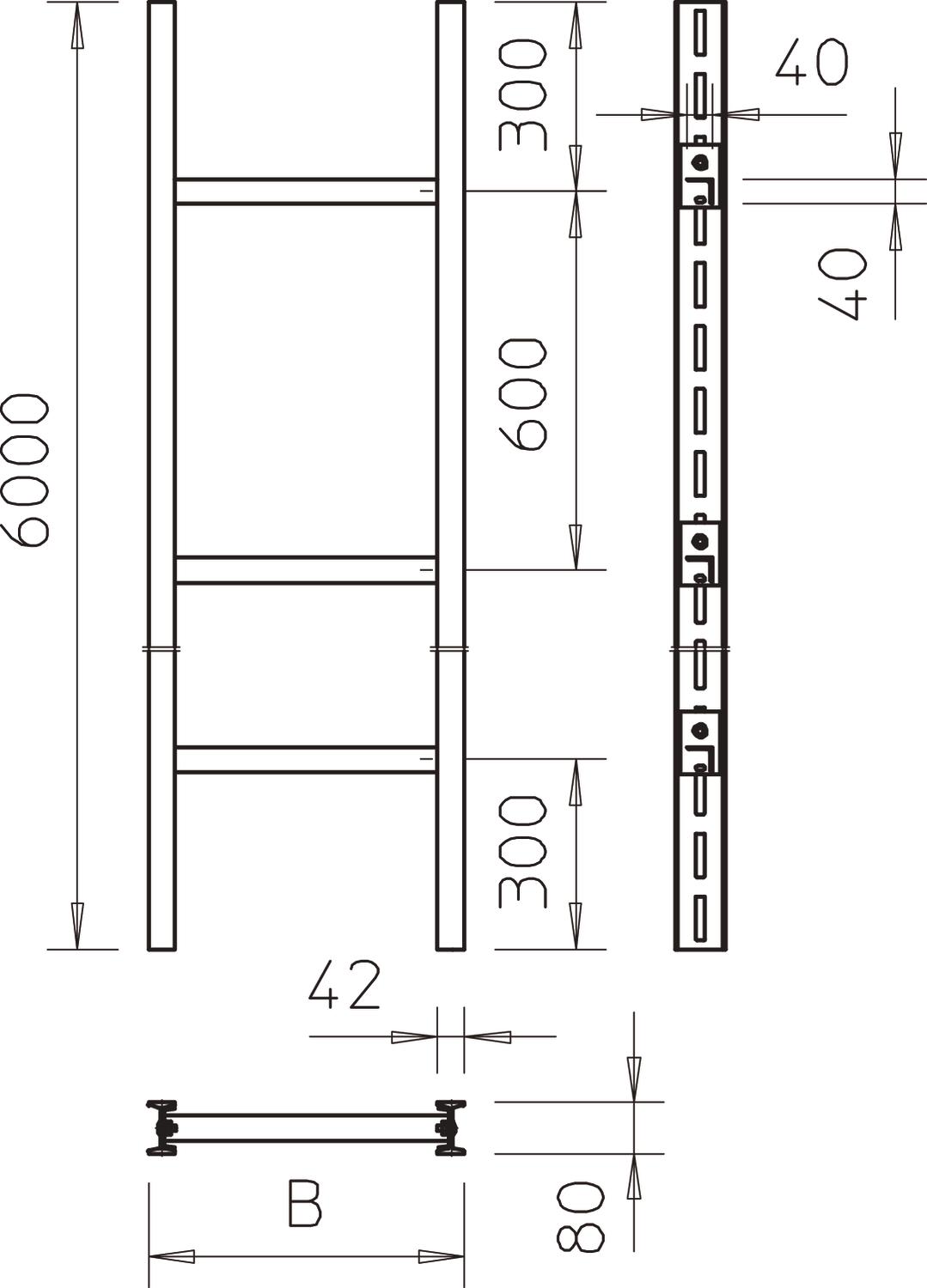 Product descriptionVertical ladder of side height 80 mm with screwed-in rungs.