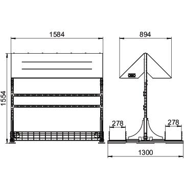 Product descriptionInverter frame for the protected installation of several inverters for PV systems on flat roofs. Free-standing. Loading on both sides possible. 2 mesh cable trays included for ballasting and for the routing of cables.