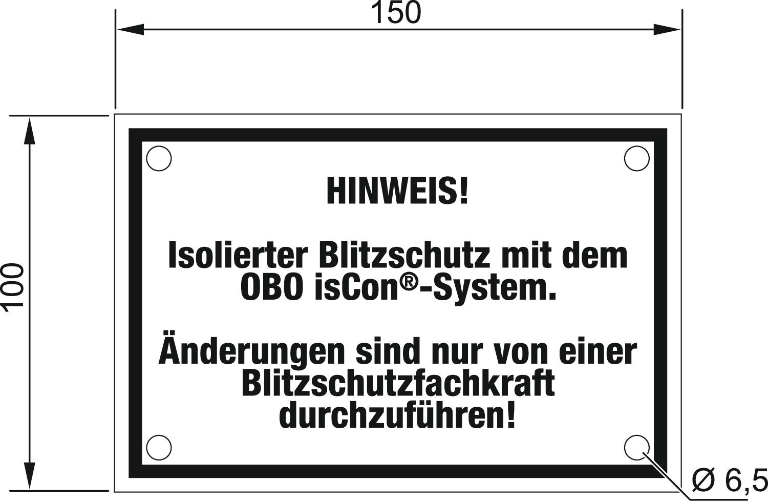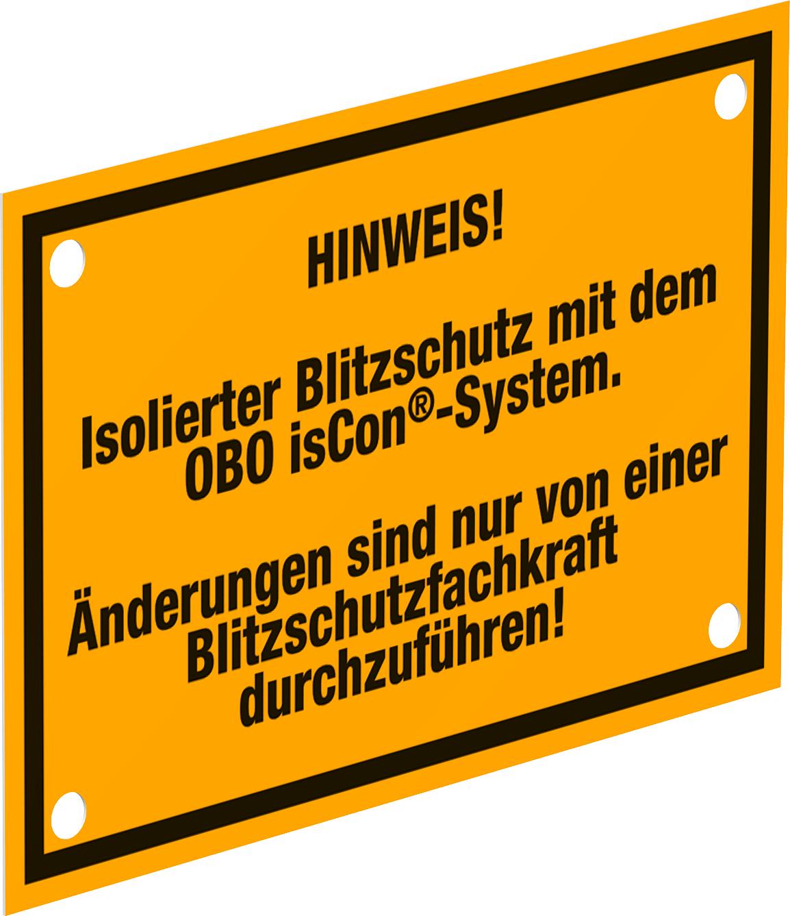 Product descriptionLabel: "NOTE! Insulated lightning protection with the OBO isCon® system. Only a lightning protection specialist may carry out changes"