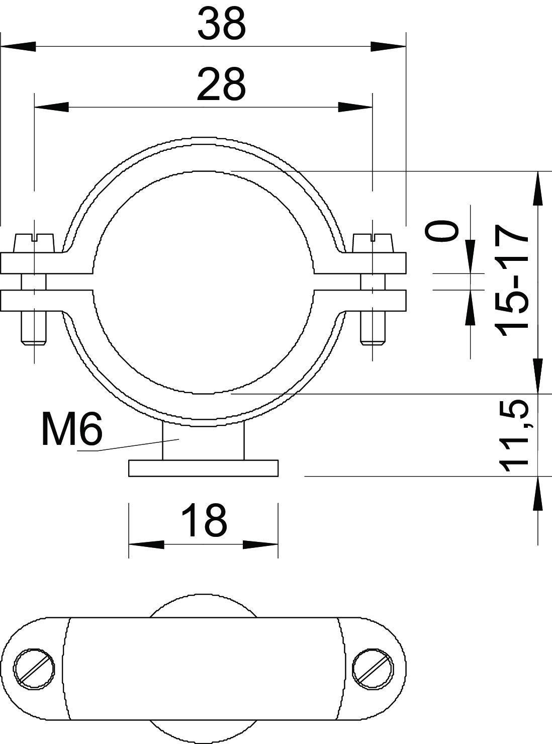 Bolt M5 x 14 Clamping range D, max. 17 mm Clamping range D, min. 15 mm CO2 Footprint (GWP) Cradle-to-Gate 0,0219 kg CO2e / 1 Piece Colour Light grey; RAL 7035 Dimension 15mm Dimension A 38 mm Dimension B 28 mm Dimension d 18 mm Dimension d max. 17 mm Dimension d min. 15 mm Dimension H 11,5 mm Fastening type Screw hole Halogen-free yes Material Polystyrene Number of cables/pipes 1 Plastic-covered no Size Pg 9 Suitable in fire protection area no Thread M6 UV-resistant no Version for Closed - All types