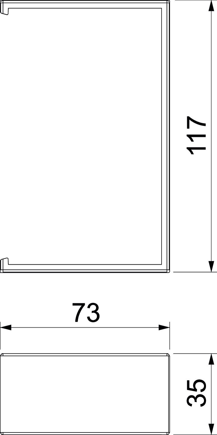 CO2 Footprint (GWP) Cradle-to-Gate 0,1786 kg CO2e / 1 Piece Colour Pure white; RAL 9010 Cover width 80 mm Fastening type Self-adhesive Halogen-free yes Height 73 mm Length 35 mm Material Polycarbonate/Acrylnitrile-butadiene-styrene Permitted temperature range, max. 60 °C Permitted temperature range, min. -5 °C Protection rating IP40 Protection rating IK code IK07. Shape Symmetrical Version for Trunking cut cover Width 117 mm - All types