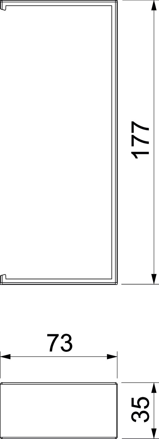 CO2 Footprint (GWP) Cradle-to-Gate 0,0438 kg CO2e / 1 Piece Colour Light grey; RAL 7035 Cover width 80 mm Fastening type Self-adhesive Halogen-free yes Height 73 mm Length 35 mm Material Polycarbonate/Acrylnitrile-butadiene-styrene Permitted temperature range, max. 60 °C Permitted temperature range, min. -5 °C Protection rating IP40 Protection rating IK code IK07. Shape Symmetrical Version for Trunking cut cover Width 177 mm - All types