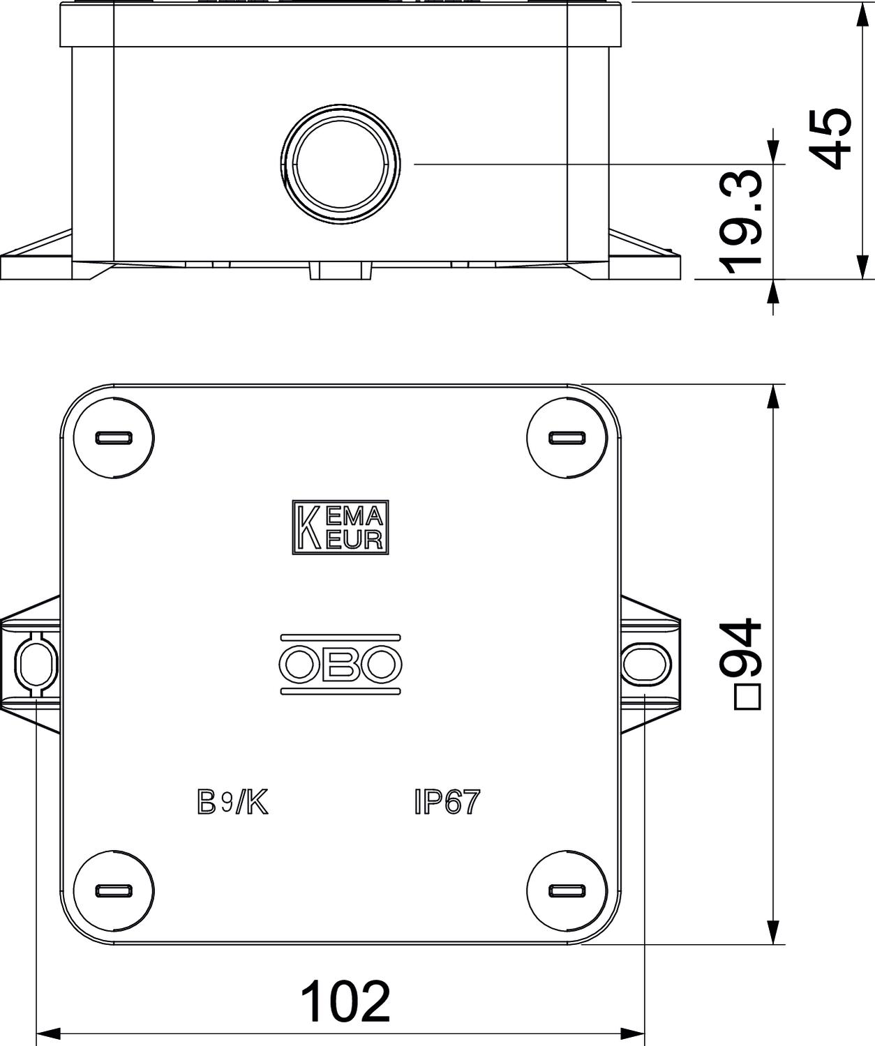 Clear internal dimensions 84x84x34 mm CO2 Footprint (GWP) Cradle-to-Gate 0,5548 kg CO2e / 1 Piece Colour Light grey; RAL 7035 Cover Not transparent Cover fastening Screwed Dimension 94x94x45 Entry from rear no Expandable no Explosion-tested version no Flame-resistant Acc. to VDE 0471/DIN 695 Part 2-1, test temperature 750°C For Ex zone Without For Ex zone dust Without For Ex zone gas Without for pipe diameter 20 mm Halogen-free yes Height 45 mm Impact-resistant no Length 94 mm Maintain electrical functions Without Material Duroplast, Aminoplast Typ 131.5 Measured insulation voltage Vi 400 V No. of entries 7 Nominal cross-section, max. 70 mm² Nominal voltage 400 V Protection rating IP67 Sealable yes Shape Square Transparent lid no Type of entry Gland Type of entry Cable Type of housing penetration Thread and pre-marking Weatherproof no Width 94 mm with lid yes With screening no - All types