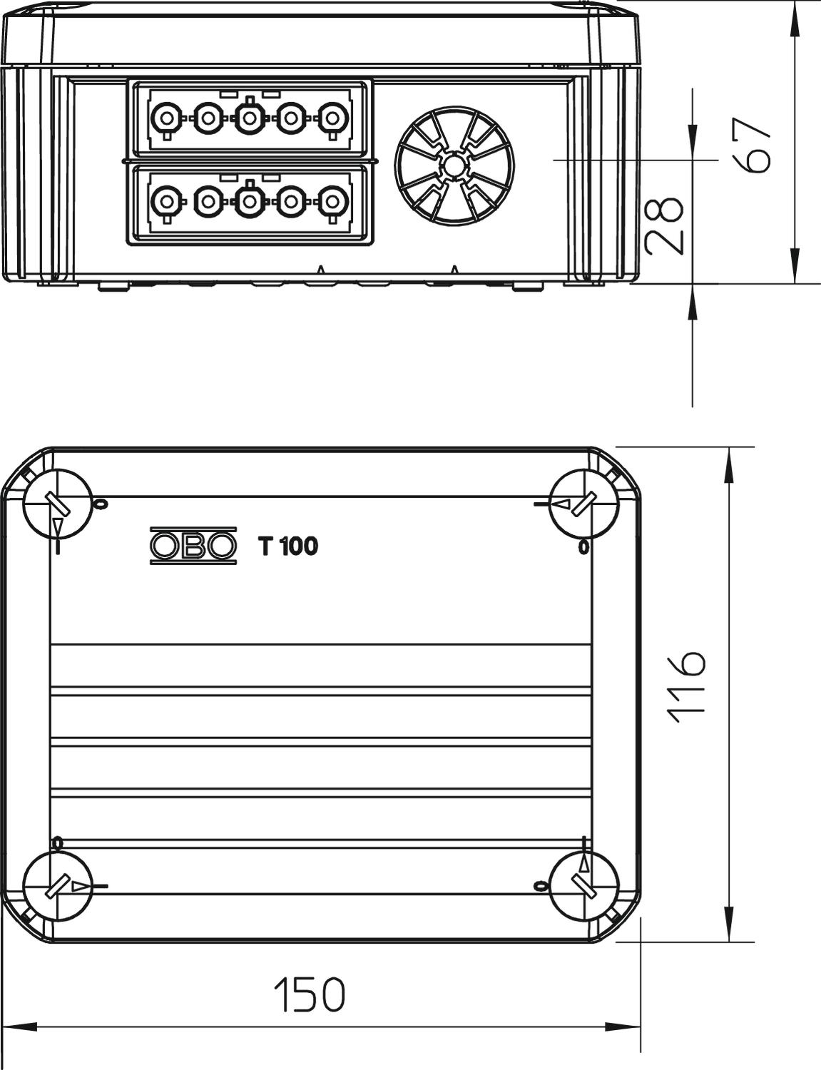Clear internal dimensions 136x102x57 mm CO2 Footprint (GWP) Cradle-to-Gate 0,6862 kg CO2e / 1 Piece Colour Light grey; RAL 7035 Cover Not transparent Cover fastening Screwed Dimension 150x116x67 Entry from rear yes Equipment Miscellaneous Expandable yes Explosion-tested version no Flame-resistant acc. to VDE 0471/DIN 695 Part 2-1, test temperature 650°C For Ex zone Without For Ex zone dust Without For Ex zone gas Without Halogen-free yes Height 67 mm Length 150 mm Maintain electrical functions Without Material Polypropylene Measured insulation voltage Vi 500 V Mounting type Wall/ceiling mounting No. of entries 4 Nominal cross-section, min. 2,5 mm² Nominal voltage 500 V Permitted temperature range, max. 60 °C Permitted temperature range, min. -5 °C Protection rating IP20 Sealable yes Shape Rectangular Transparent lid no Type of entry Strain relief entries for direct penetrations for cable diameters of 7−21 mm Type of housing penetration Pre-marking Weatherproof no Width 116 mm with lid yes With screening no - All types
