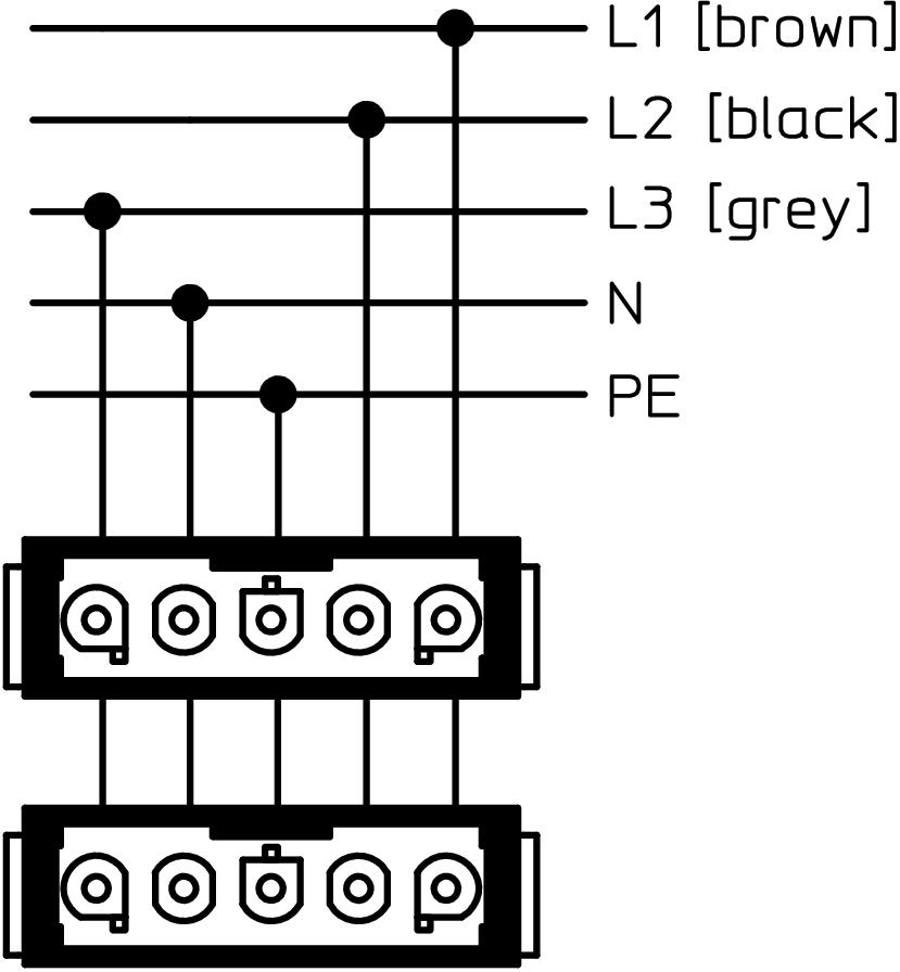 Product descriptionJunction box with Wieland sockets, 6s3p 3x2, for the connection of cables indoors and in protected outdoor areas. Rectangular design with knock-out entries to the sides and knock-out entries in the bottom. Suitable for wall and ceiling mounting and on mounting panels. With the option of fastening inside and to mount via the corner domes. Cover with quick lock, sealable. Made from halogen-free and UV-resistant materials.