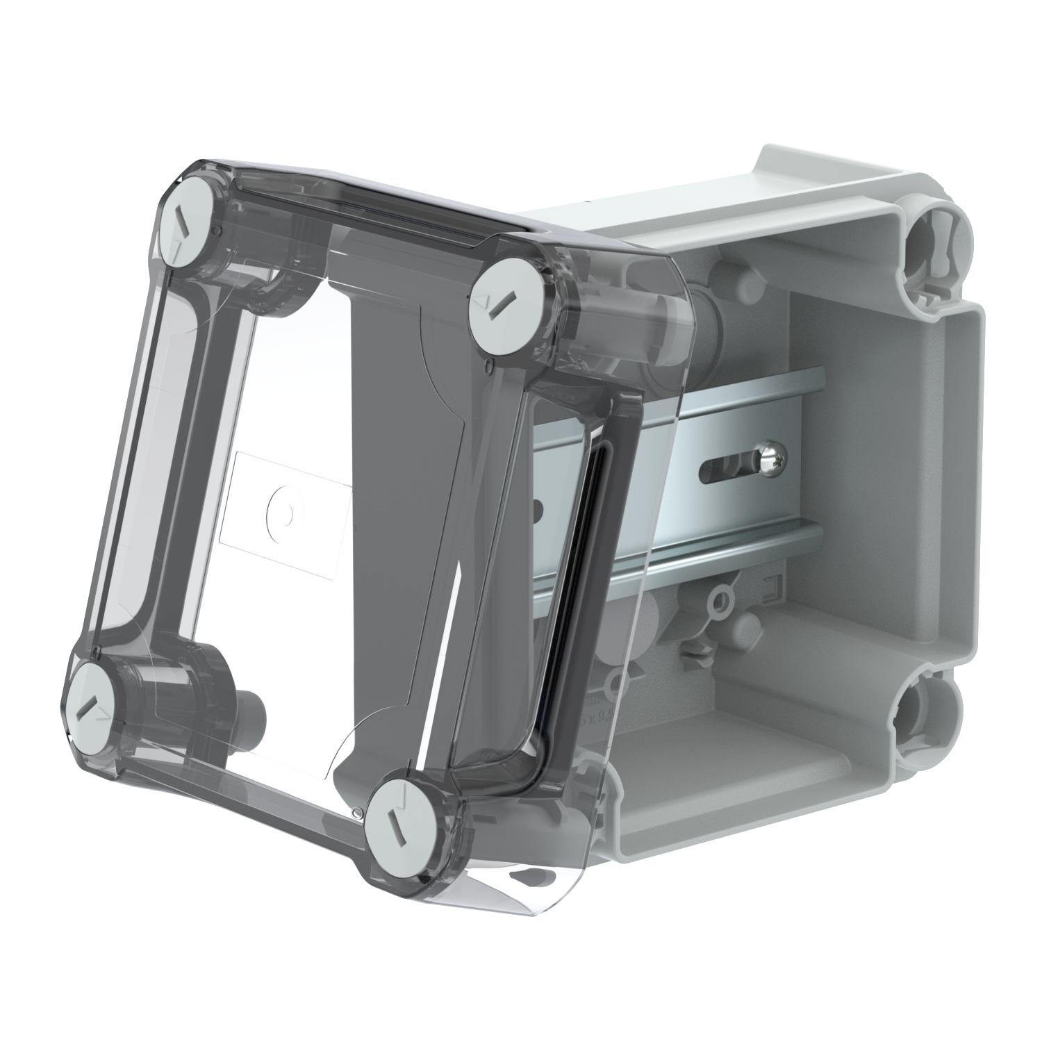 Product descriptionClosed junction box for the connection of cables and lines indoors and in protected outdoor areas. Square design without entries. Suitable for wall and ceiling mounting and on mounting panels. With the option to fasten inside and to mount via the corner domes. High, transparent cover with quick lock, sealable. Made from halogen-free and UV-resistentant materials.