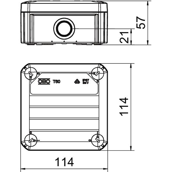 Clear internal dimensions 100x100x48 mm CO2 Footprint (GWP) Cradle-to-Gate 0,5616 kg CO2e / 1 Piece Colour Light grey; RAL 7035 Cover Not transparent Cover fastening Screwed Dimension 114x114x57 Entry from rear yes Equipment Without Expandable yes Explosion-tested version no Fibre-glass reinforced no Flame-resistant acc. to VDE 0471/DIN 695 Part 2-1, test temperature 650°C For Ex zone Without For Ex zone dust Without For Ex zone gas Without Halogen-free yes Height 57 mm Length 114 mm Maintain electrical functions Without Material Polypropylene Measured insulation voltage Vi 500 V Mounting type Wall/ceiling mounting No. of entries 7 Nominal cross-section, min. 6 mm² Nominal voltage 500 V Permitted temperature range, max. 60 °C Permitted temperature range, min. -5 °C Protection rating IP67 Protection rating IK code IK07. Sealable yes Shape Square Transparent lid no Type of entry Gland Type of entry Plug-in seal Type of housing penetration Pre-marking Weatherproof no Width 114 mm with lid yes With screening no - All types