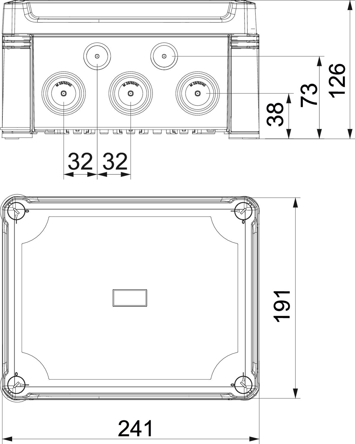 Clear internal dimensions 227x177x110 mm CO2 Footprint (GWP) Cradle-to-Gate 3,2889 kg CO2e / 1 Piece Colour Grey / transparent Cover Transparent Cover fastening Screwed Dimension 240x191x125 Entry from rear no Equipment Support rail Expandable yes Explosion-tested version no Fibre-glass reinforced yes Flame-resistant acc. to VDE 0471/DIN 695 Part 2-1, test temperature 650°C Halogen-free yes Height 126 mm Impact-resistant yes Length 241 mm Material Polycarbonate Max. Conductor cross-section 16 mm² Measured insulation voltage Vi 750 V Mounting type Wall/ceiling mounting No. of entries 10 Nominal cross-section, max. 16 mm² Nominal cross-section, min. 6 mm² Nominal voltage 750 V Permitted temperature range, max. 60 °C Permitted temperature range, min. -5 °C Protection rating IP67 Protection rating IK code IK09 Sealable yes Shape Rectangular Transparent lid yes Type of entry Cuttable stepped membrane Type of housing penetration Pre-marking Weatherproof yes Width 191 mm with lid yes With screening no - All types