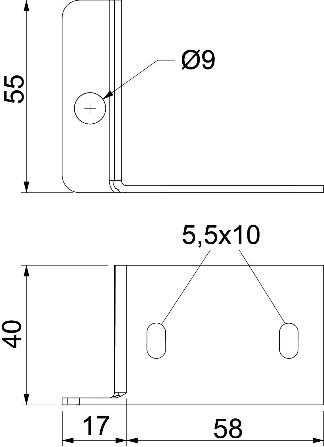 Colour zinc Dimension 58x58x40 Dimension B 58 mm Dimension H 55 mm Height 55 mm Material Steel Suitable for outdoor use no Surface Strip galvanized Type of accessory Miscellaneous Width 58 mm - All types