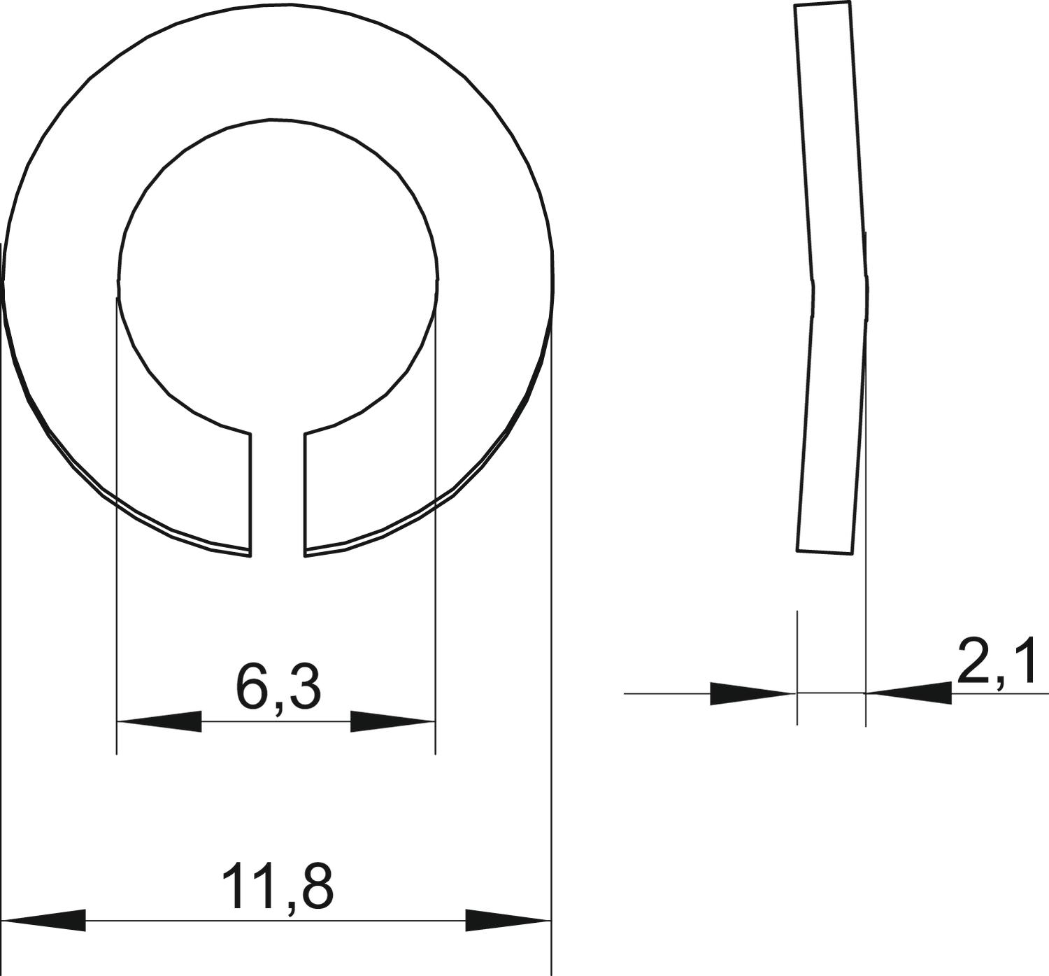 CO2 Footprint (GWP) Cradle-to-Gate 0,0019 kg CO2e / 1 Piece Dimension M6 Dimension d 6,3 mm Dimension d max. 11,8 mm Dimension d min. 11,8 mm Dimension h 2,1 mm External diameter 11,8 mm Height 2,1 mm Inner diameter 0,25 mm Lock washer version Ribbed Material Steel Plate thickness 0,08 in Surface Electrogalvanized Thickness 2,1 mm Thread M6 - All types
