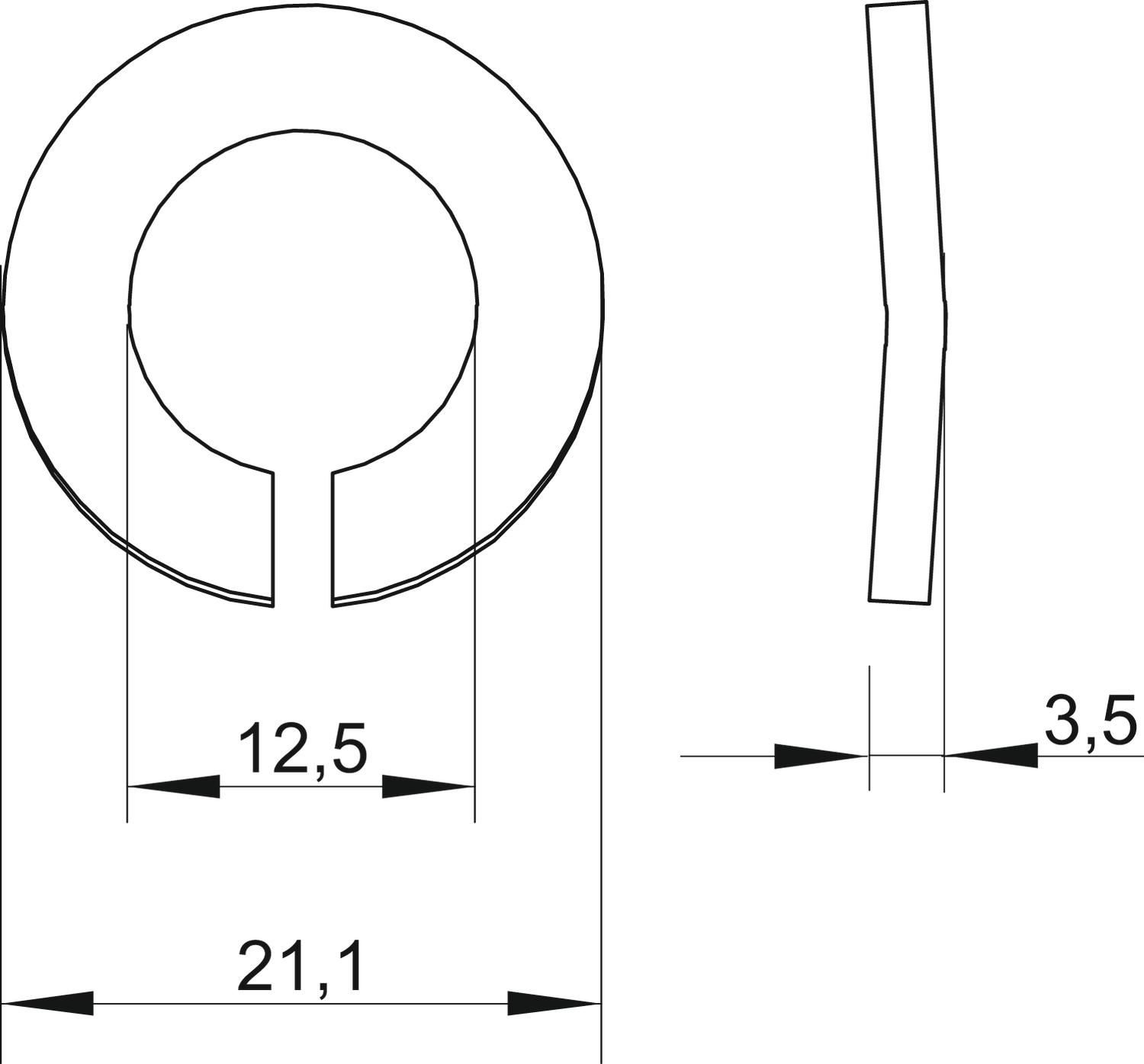 CO2 Footprint (GWP) Cradle-to-Gate 0,0078 kg CO2e / 1 Piece Dimension M12 Dimension d 12,5 mm Dimension d max. 21,1 mm Dimension d min. 21,1 mm Dimension h 3,5 mm External diameter 21,1 mm Height 3,5 mm Inner diameter 0,49 mm Lock washer version Ribbed Material Steel Plate thickness 0,14 in Surface Electrogalvanized Thickness 3,5 mm Thread M12 - All types