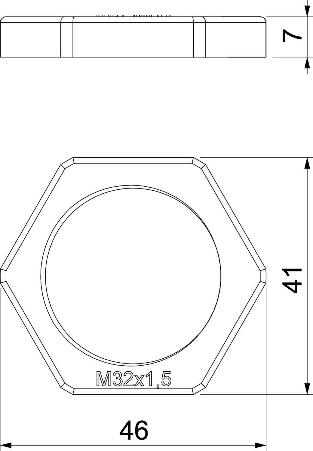 CO2 Footprint (GWP) Cradle-to-Gate 0,026 kg CO2e / 1 Piece Colour Light grey; RAL 7035 Dimension M32 Dimension E 46 mm Dimension L 7 mm Fibre-glass reinforced no Halogen-free yes Impact-resistant no Material Polyamide Nominal thread size metric/PG 32 Thread M32 x 1,5 Thread type Metric WAF 41 - All types