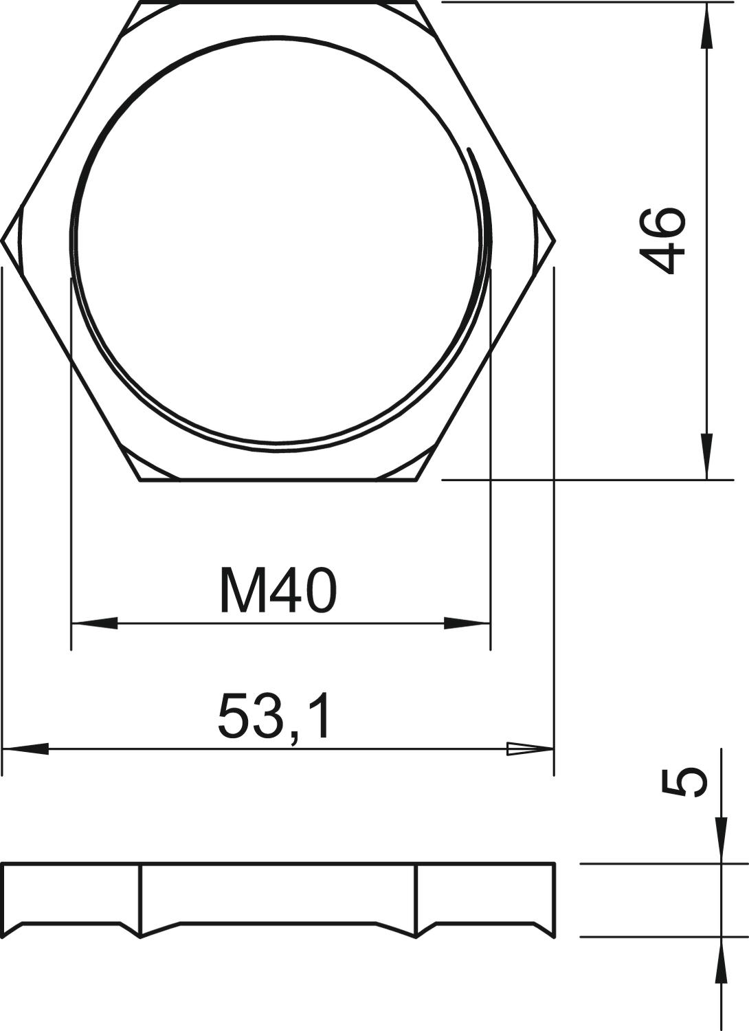 CO2 Footprint (GWP) Cradle-to-Gate 0,0826 kg CO2e / 1 Piece Dimension M40x1,5 Dimension E 53,1 mm Dimension L 5 mm Fibre-glass reinforced no Halogen-free no Impact-resistant no Material Brass Nominal thread size metric/PG 40 Surface Nickel-plated Thread M40 x 1,5 Thread type Metric WAF 46 - All types