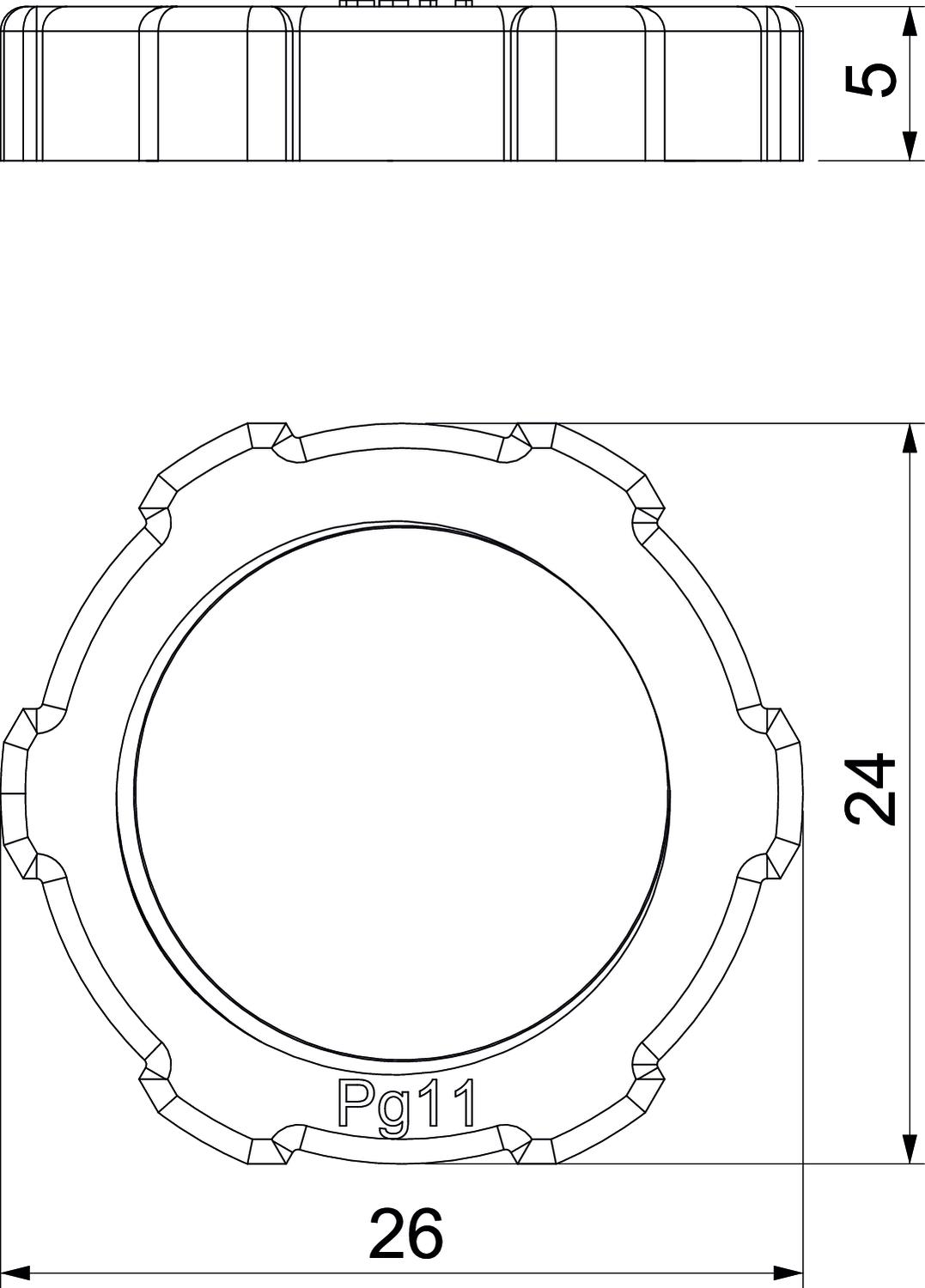 CO2 Footprint (GWP) Cradle-to-Gate 0,0088 kg CO2e / 1 Piece Colour Light grey; RAL 7035 Dimension PG11 Dimension E 26 mm Dimension L 5 mm Fibre-glass reinforced no Halogen-free yes Impact-resistant no Material Polyamide Nominal thread size metric/PG 11 Thread Pg 11 Thread type PG WAF 24 - All types