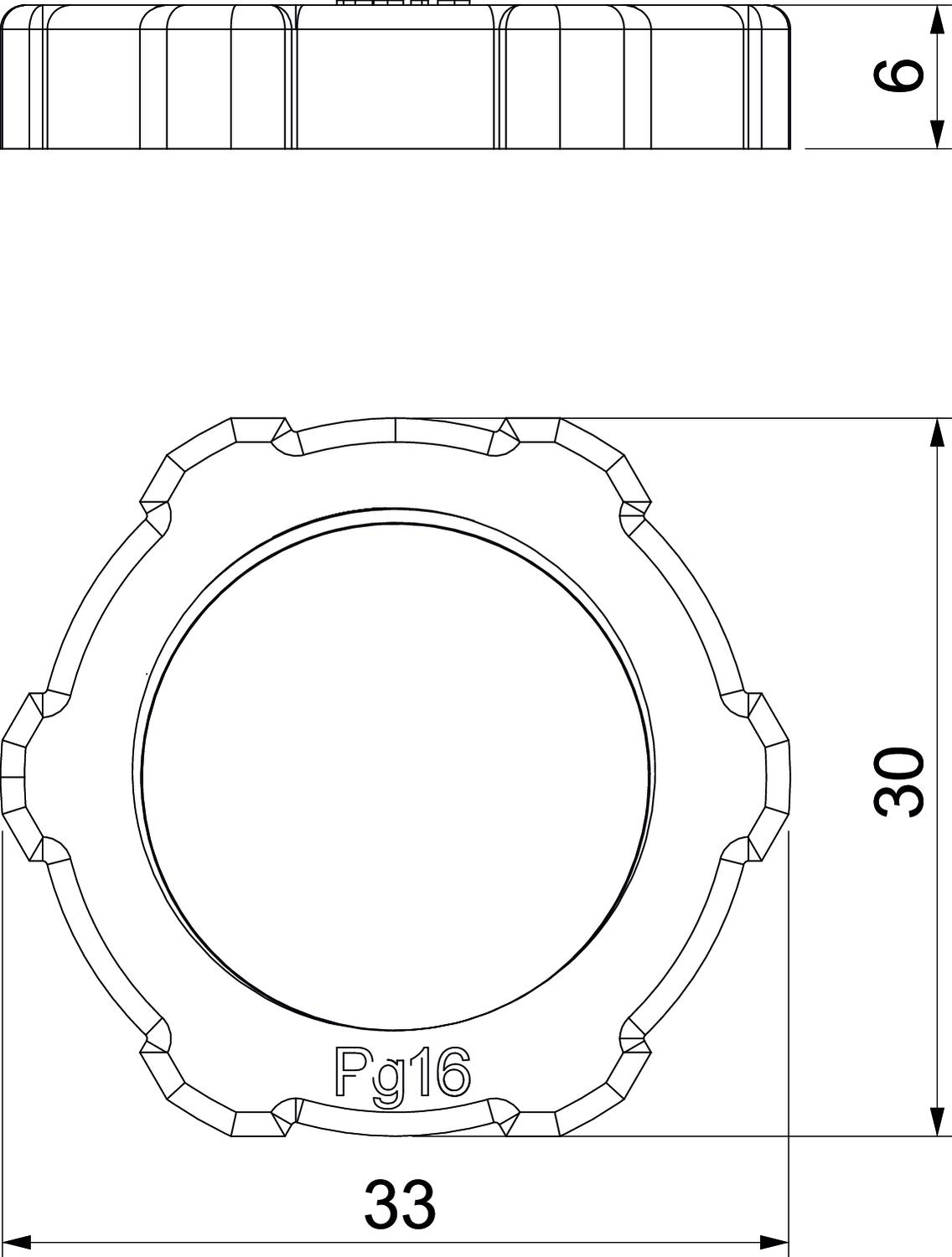 CO2 Footprint (GWP) Cradle-to-Gate 0,0148 kg CO2e / 1 Piece Colour Light grey; RAL 7035 Dimension PG16 Dimension E 33 mm Dimension L 6 mm Fibre-glass reinforced no Halogen-free yes Impact-resistant no Material Polyamide Nominal thread size metric/PG 16 Thread Pg 16 Thread type PG WAF 30 - All types