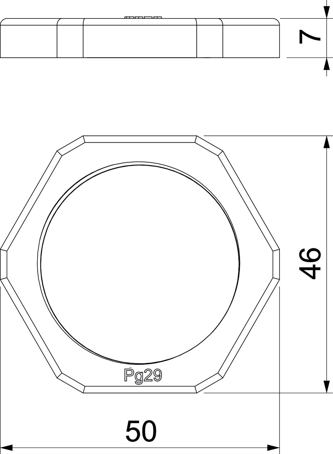 CO2 Footprint (GWP) Cradle-to-Gate 0,0351 kg CO2e / 1 Piece Colour Light grey; RAL 7035 Dimension PG29 Dimension E 50 mm Dimension L 7 mm Fibre-glass reinforced no Halogen-free yes Impact-resistant no Material Polyamide Nominal thread size metric/PG 29 Thread Pg 29 Thread type PG WAF 46 - All types