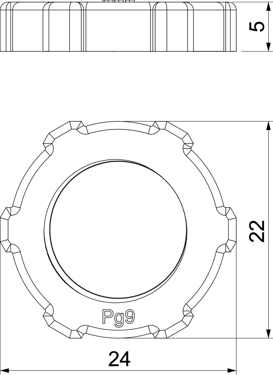 CO2 Footprint (GWP) Cradle-to-Gate 0,0097 kg CO2e / 1 Piece Colour Light grey; RAL 7035 Dimension PG9 Dimension E 24 mm Dimension L 5 mm Fibre-glass reinforced no Halogen-free yes Impact-resistant no Material Polyamide Nominal thread size metric/PG 9 Thread Pg 9 Thread type PG WAF 22 - All types