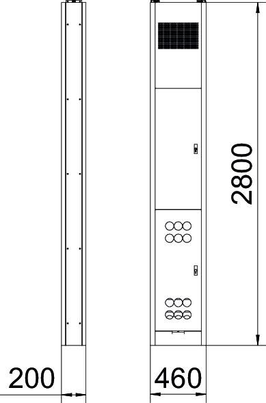 Cable entry Top/bottom Ceiling mounting no Changes according to location no CO2 Footprint (GWP) Cradle-to-Gate 326,4259 kg CO2e / 1 Piece Colour Pure white; RAL 9010 Continuous profile no Dimension 2820x460x200 Fastening type Bolts Floor mounting yes Halogen-free yes Height 200 mm Length 2820 mm Material Steel Permitted temperature range, max. 60 °C Permitted temperature range, min. -5 °C Pole height, min. 2800 mm Pole shape Rectangular Protection rating IP20 Protection rating IK code IK10 Version for Miscellaneous Width 460 mm - All types