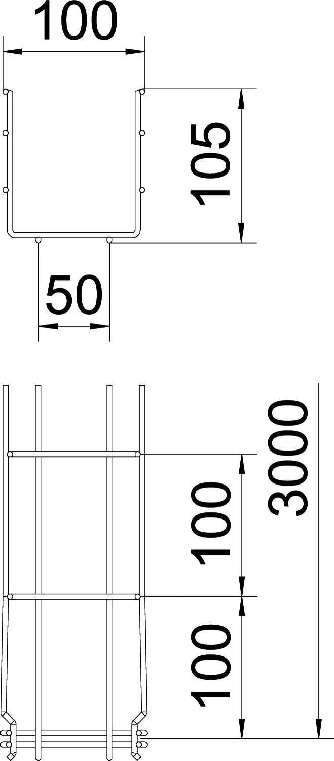 Product descriptionMesh cable tray with shaped connector of side height 105 mm.