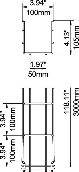 Product descriptionMesh cable tray with shaped connector of side height 105 mm.