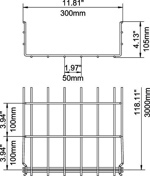 Product descriptionMesh cable tray with shaped connector of side height 105 mm.